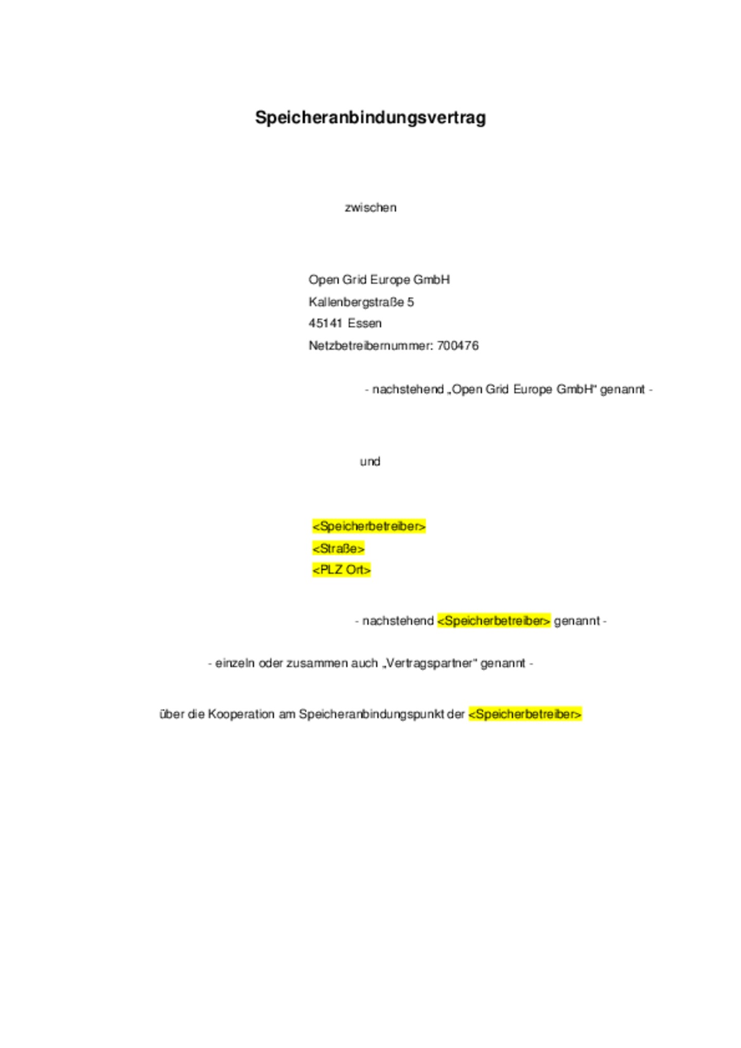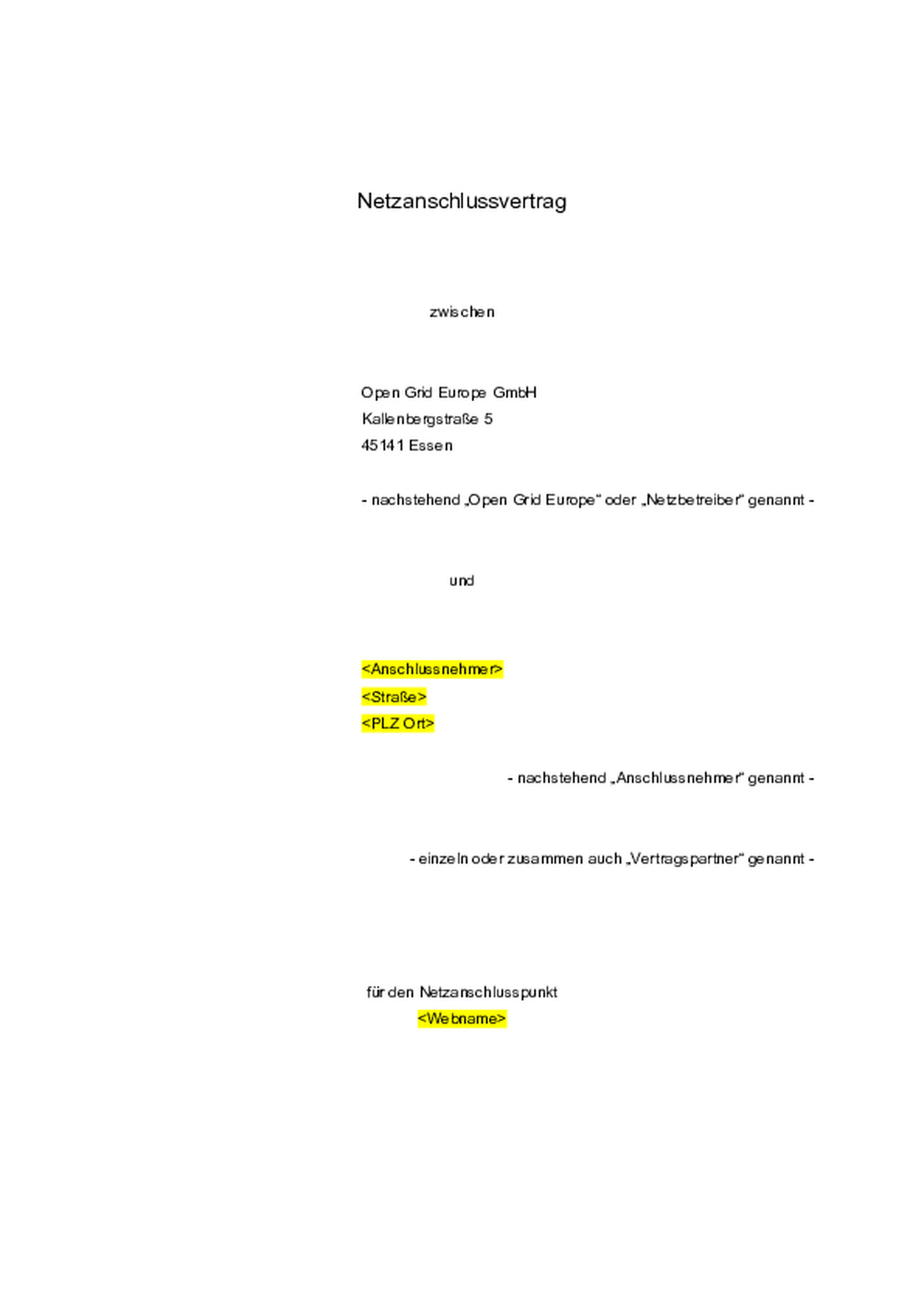 Dieser Vertrag regelt den Anschluss der Gasanlage des Anschlussnehmers an das Gasversorgungsnetz der Open Grid Europe (Netzanschluss) am Netzanschlusspunkt (NAP) zur Entnahme von Gas (Ausspeisepunkt)…. Dies umfasst insbesondere Regelungen zum Betrieb und zur Änderung der dem NAP zugeordneten Gas-Druckregel- und Messanlage sowie den Informationsaustausch zwischen den Vertragspartnern.