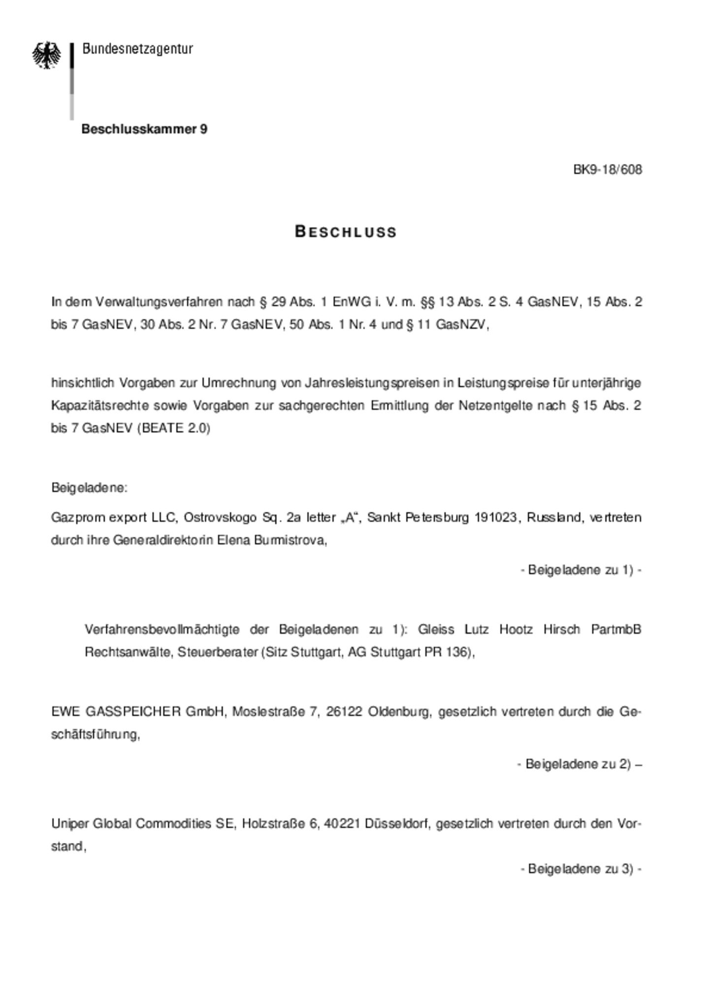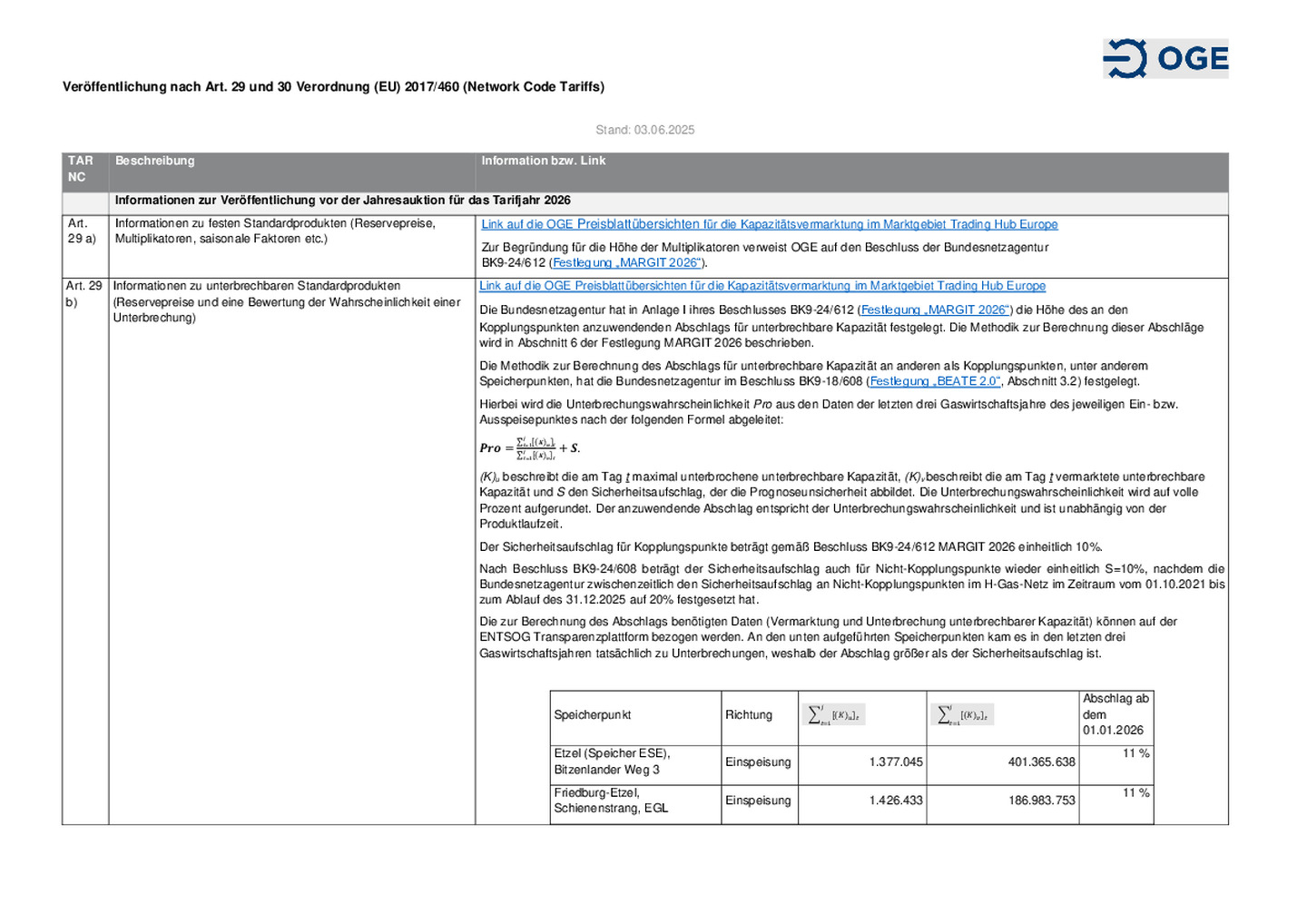 Veröffentlichung der Open Grid Europe GmbH gemäß Netzkodex über harmonisierte Fernleitungsentgeltstrukturen (Verordnung (EU) 2017/460)
