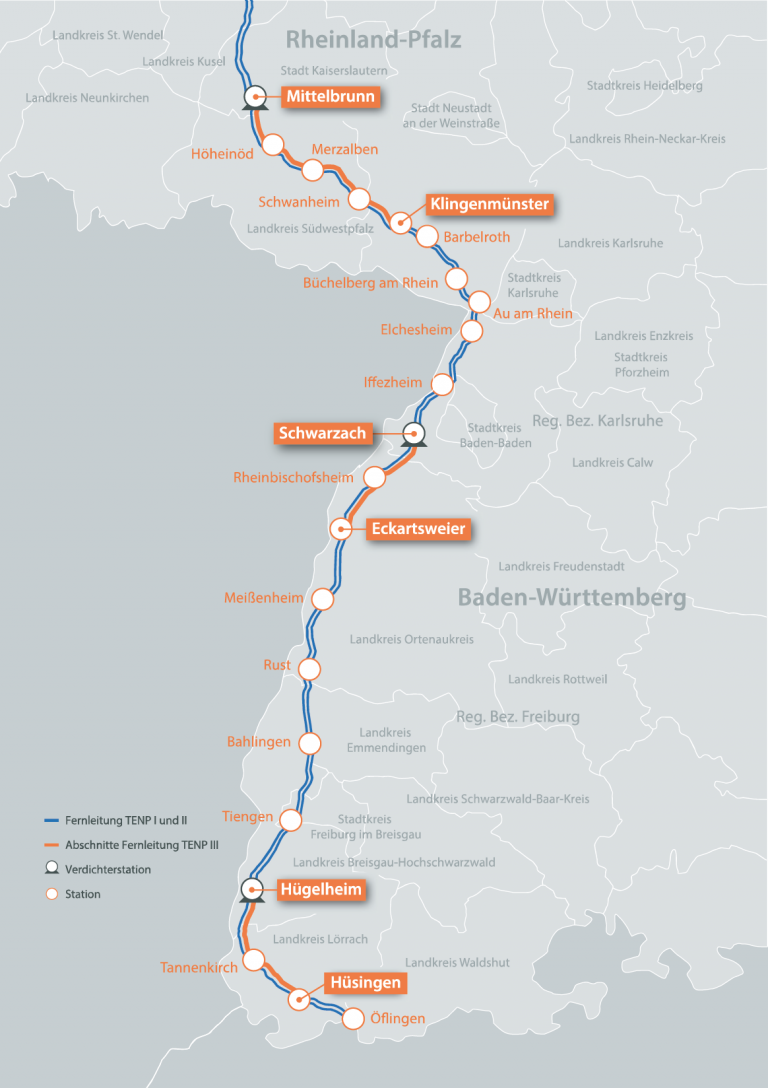 Die TENP ist eine der wichtigsten Erdgasverbindungen Europas. Sie verläuft von der deutsch-niederländischen bis an die Schweizer Grenze.