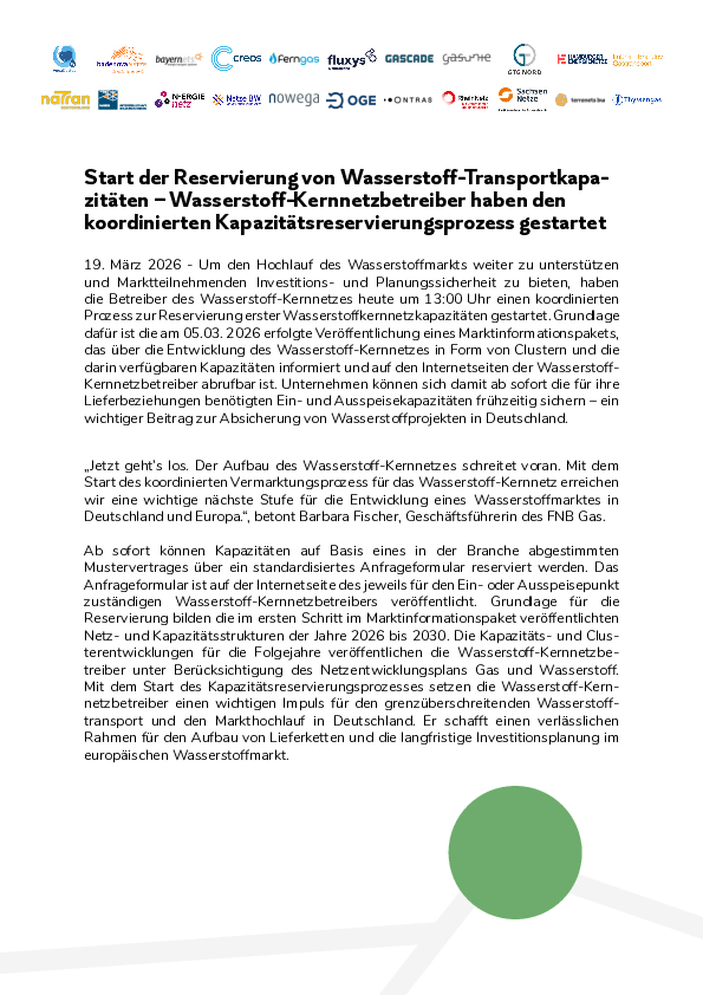 Wasserstoff-Kernnetzbetreiber starten am 19. März 2026 koordinierten Kapazitätsreservierungsprozess