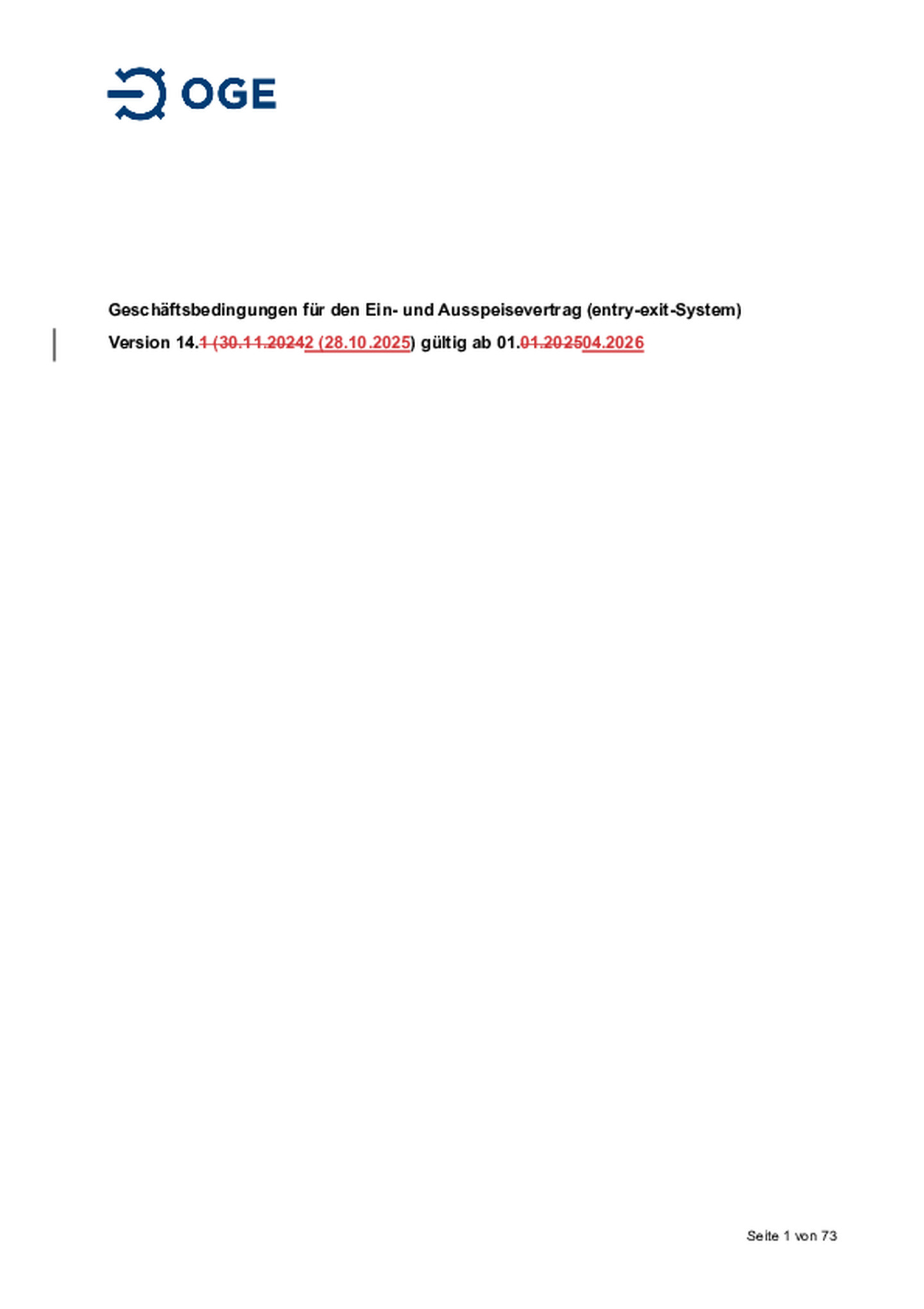 Geschäftsbedingungen für den Ein- und Ausspeisevertrag (entry-exit-System), gültig ab 01.04.2026