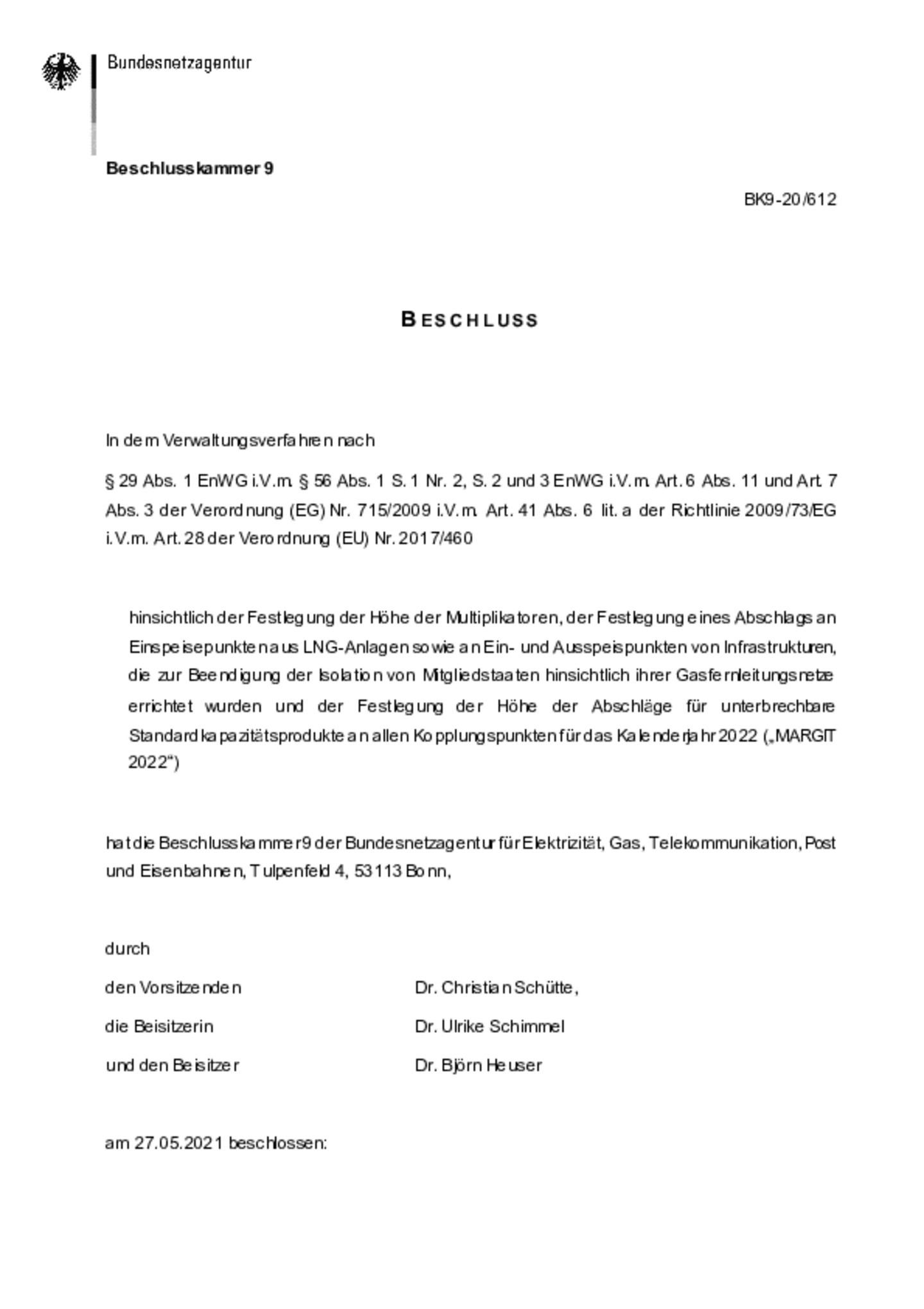 Festlegung „MARGIT 2022“ vom 27.05.2021