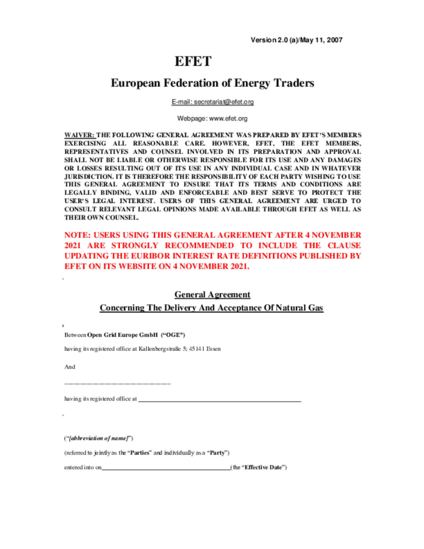 Der OGE EFET Vertrag zusammen mit dem Dokument „OGE Verbrauchsgasausschreibung 2026“ regelt die technischen, betrieblichen, organisatorischen und kommerziellen Rahmenbedingungen für die Belieferung und Abrechnung des Verbrauchsgases zwischen OGE und dem Lieferanten.