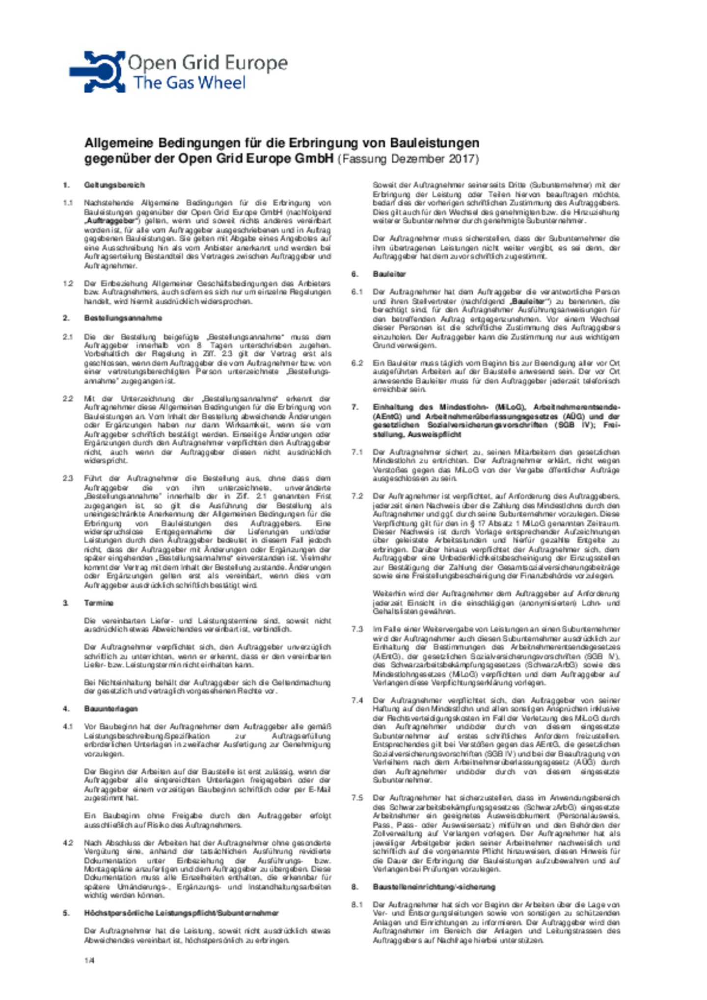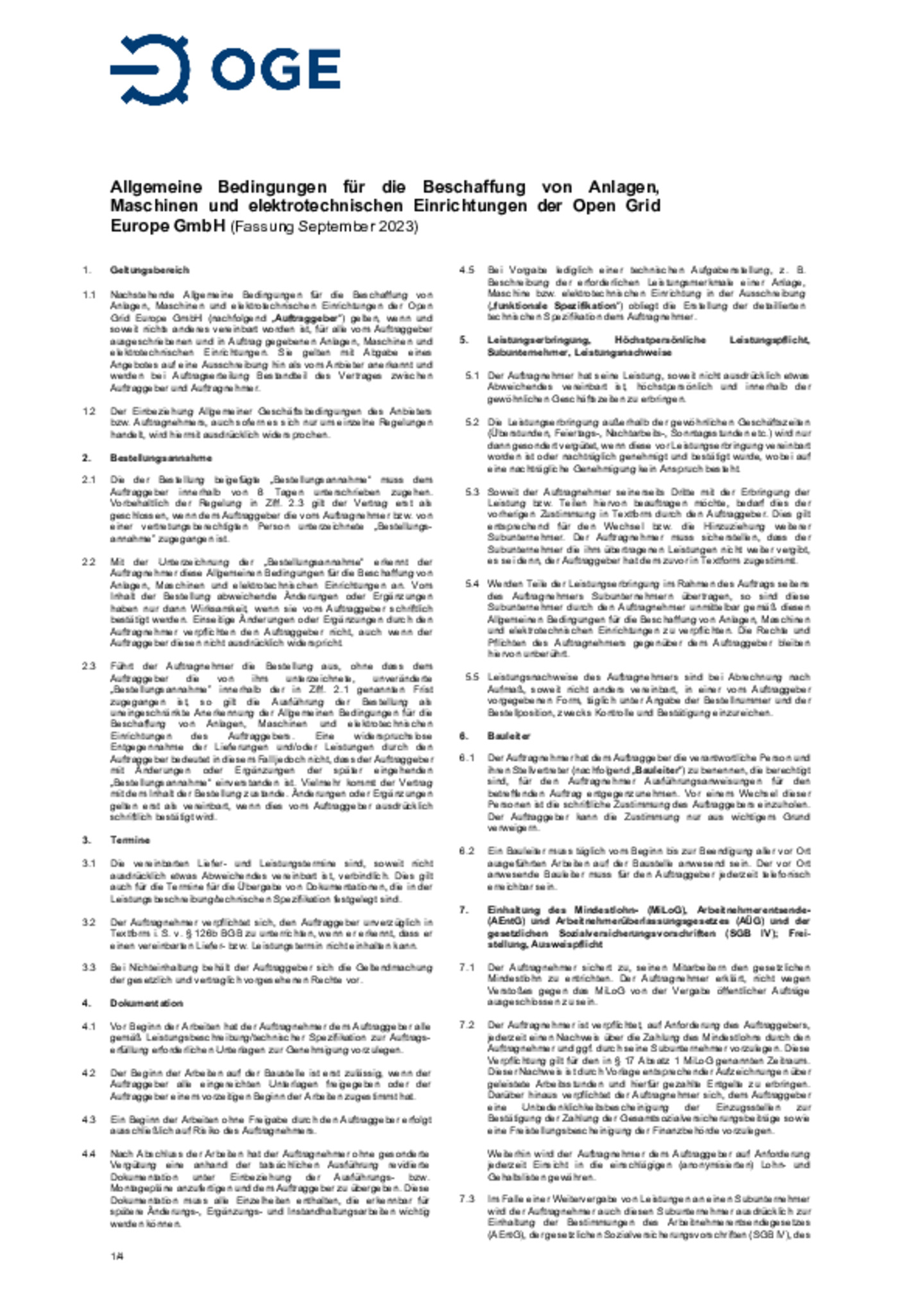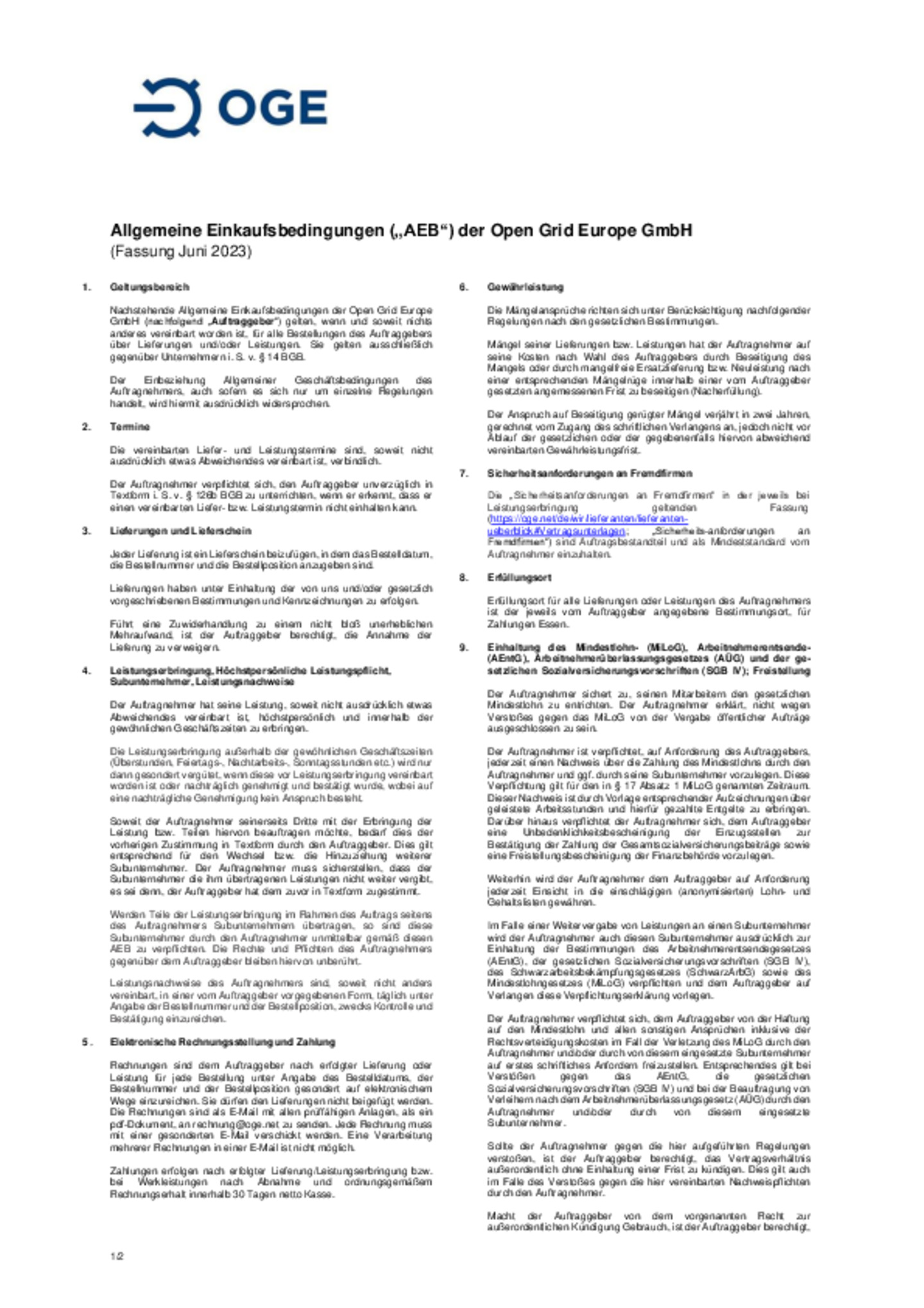 Allgemeine Einkaufsbedingungen der Open Grid Europe GmbH