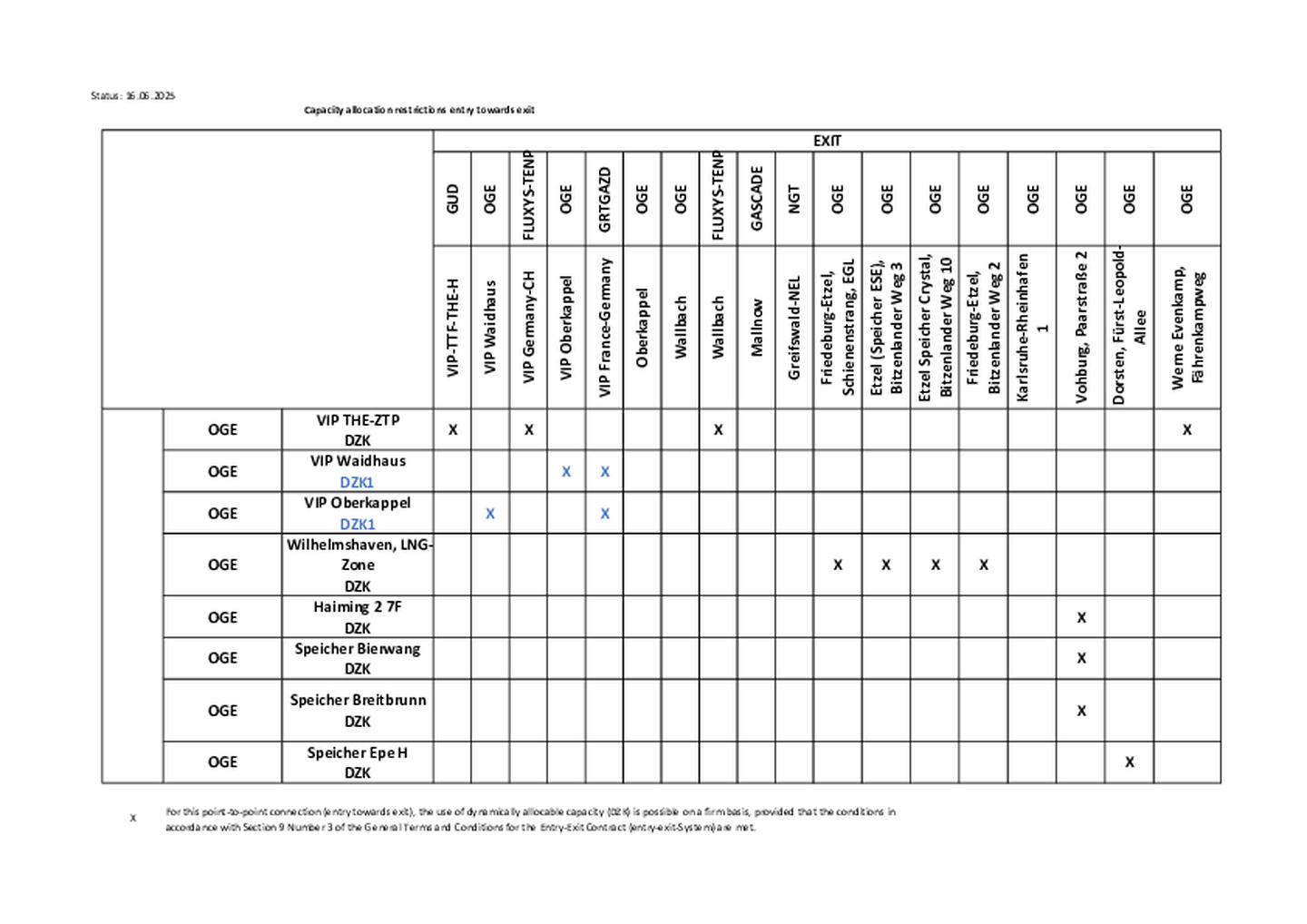 Please note that this information is non-binding and for convenience only. The legally binding document is the terms and conditions of the standard entry or exit contract in its current version as published by OGE.