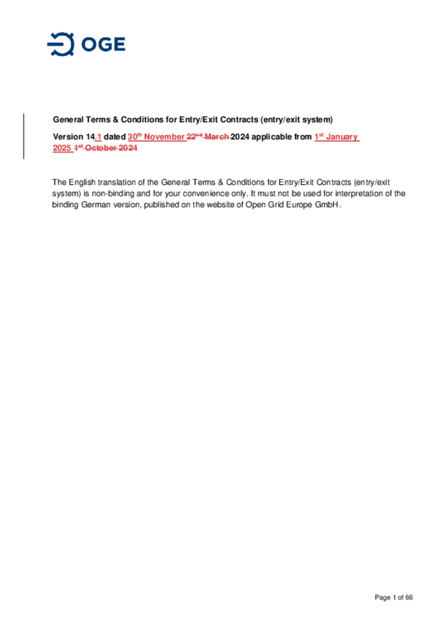 Supplementary Terms and Conditions of Open Grid Europe GmbH