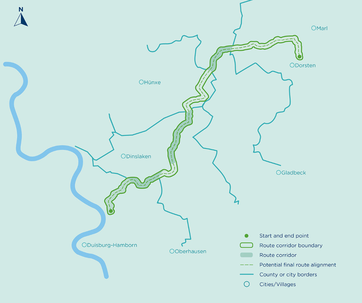 Following the regional planning assessment by Regionalverbund Ruhr in winter 2022, OGE is now preparing the documents for the planning approval process.